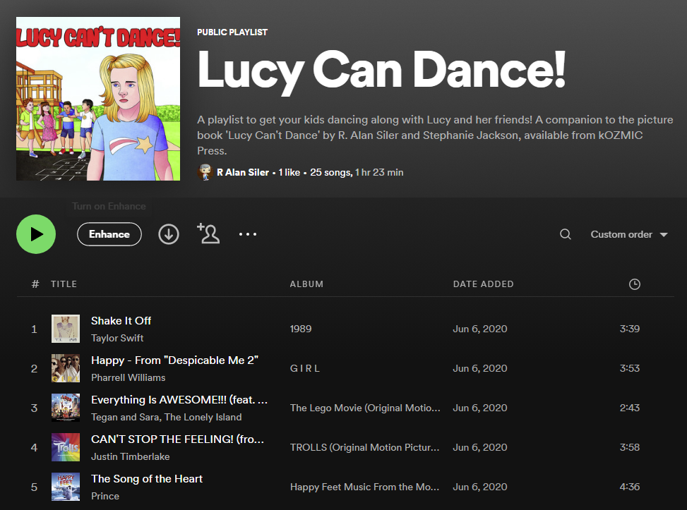 Lucy has discovered a love of dancing – and now you can too! Here’s a Spotify Playlist of some of Lucy’s favorite songs!